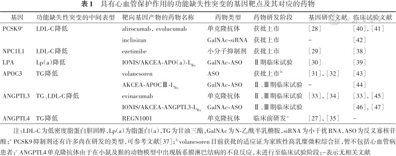 具有心血管保护作用的功能缺失性突变的基因靶点及其对应的药物