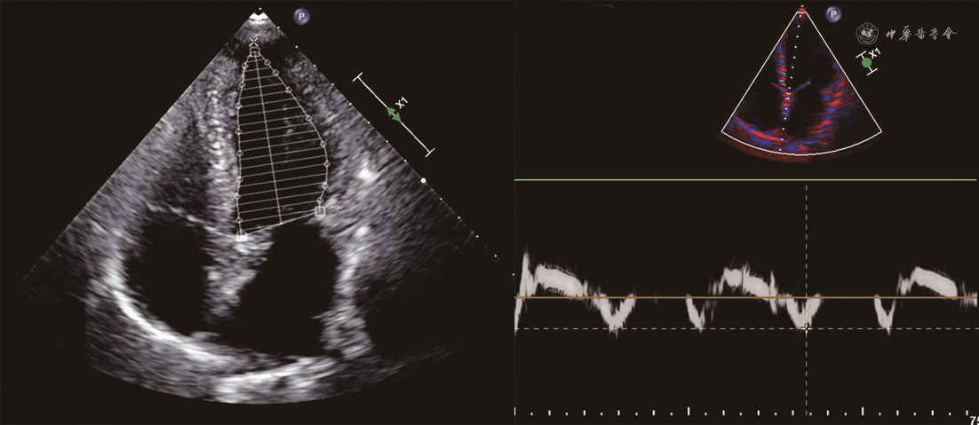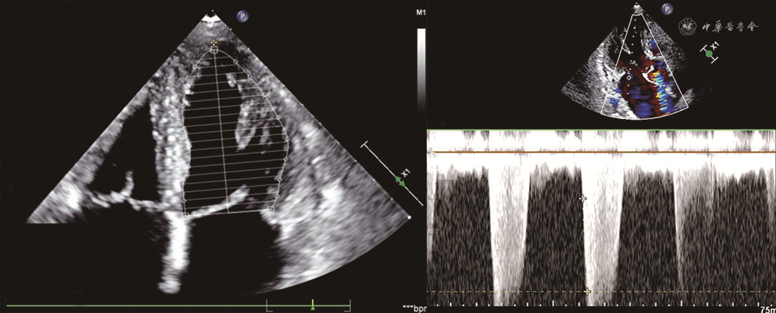 患者男,68岁,主因“胸痛、后背痛1 d”于2019年12月25日入院。患者有支气管哮喘病史,长期口服孟鲁司特。否认系统病史,否认食物、药物过敏史。无疫水、疫区接触史,无寄生虫接触史。入院体格检查:体温36.2 ℃,脉搏71次/min,呼吸25次/min,血压85/45 mmHg(1 mmHg=0.133 kPa)。神清语利,查体合作。浅表淋巴结未触及肿大。双肺呼吸音粗,可闻及肺底湿性啰音。心脏律齐,各瓣膜未闻及明显病理性杂音。腹软,无压痛及反跳痛。双下肢无水肿。血常规:白细胞计数22.39×109/L,嗜酸性粒细胞绝对值16.71×109/L[参考值(0.05~0.50)×109/L]。血浆D-二聚体1 027 μg/L(参考值<500 μg/L),肌钙蛋白T 2.950 μg/L,N末端B型利钠肽原9 949 ng/L(参考值0~1 800 ng/L),C反应蛋白1.32 mg/dl,免疫球蛋白E 421 IU/ml。心电图:窦律,完全性右束支传导阻滞。超声心动图:左心室舒张末期内径(LVEDD)58 mm,左心室收缩末期内径(LVESD)42 mm,左心房前后径43 mm,右心房左右径44 mm,左心室壁节段性运动异常,二尖瓣、三尖瓣中重度反流,下腔静脉内径增宽,左心室射血分数(LVEF)为43%,肺动脉收缩压70 mmHg(图1)。冠状动脉CT血管造影(CTA):冠状动脉呈右优势型,左、右冠状动脉未见有意义狭窄。给予补液、多巴胺、甲基泼尼龙静脉滴注以及口服甲泼尼龙等对症治疗,血压可维持在90/60 mmHg左右。2020年1月5日复查超声心动图:下腔静脉增宽,左心室壁运动普遍减弱,左心室收缩、舒张功能下降,二尖瓣轻度反流,主动脉瓣、三尖瓣轻度反流,心包积液(少量),肺动脉收缩压45 mmHg。骨髓(胸骨、髂骨)细胞学检查:粒细胞系统、红细胞系统、巨细胞系统三系增生,骨髓嗜酸性粒细胞增多。骨髓病理:骨髓增生低下,粒细胞与红细胞比例略增高,偏成熟为主,巨核细胞数量正常,形态未见特殊,可见散在嗜酸性粒细胞,稍多。基因检查报告:未检测到FIP1L1/PDGFRα融合基因,未检测到PDGFRβ、PGFR1、TEL-ABL1基因重排,未检测到JAK2基因分离重排。患者症状好转,生命体征平稳出院。出院诊断:特发性嗜酸性粒细胞增多症,Löeffler心内膜炎,心律失常(完全性右束支传导阻滞),纽约心脏协会(NYHA)心功能Ⅱ级、肺动脉高压、支气管哮喘。出院后口服甲泼尼龙片半年。出院后5个月随访,患者血常规正常,2020年5月28日复查超声心动图示LVEDD 57 mm、LVESD 42 mm、左心房前后径35 mm、右心房左右径41 mm、左心室壁节段性运动异常、二尖瓣和三尖瓣轻中度反流、LVEF为54%、肺动脉收缩压30 mmHg(图2)。2020年6月12日完善心脏磁共振检查,可见心脏饱满,左心室游离壁心肌变薄,以乳头肌至心尖水平外侧壁为著,右心室心肌形态未见明确异常,左、右心室收缩及舒张功能未见明确异常。钆对比剂延迟强化(LGE)见左心室心内膜区多发斑点状,二尖瓣、三尖瓣未见明显反流信号,提示左心室心肌弥漫性损伤,符合Löeffler心内膜炎表现(图3)。考虑心脏重构有加重趋势,除继续给予口服甲泼尼龙片外,加用沙库巴曲缬沙坦(ARNI)抑制心脏重构。出院后9个月(2020年9月21日)再次复查超声心动图(图4):LVEDD 50 mm,LVESD 35 mm,左心房前后径34 mm,右心房左右径37 mm,左心室壁节段性运动异常,二尖瓣、三尖瓣轻度反流,LVEF 56%,肺动脉收缩压30 mmHg。