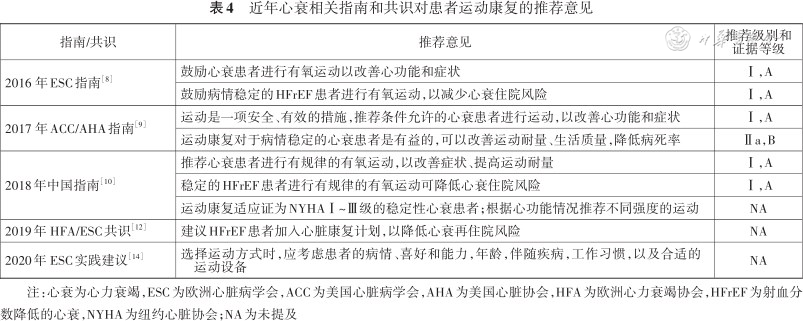 | 2016 年ESC指南[8] | 鼓励心衰患者进行有氧运动以改善心功能和症状 | Ⅰ,A |