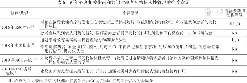 近年心衰相关指南和共识对患者药物依从性管理的推荐意见