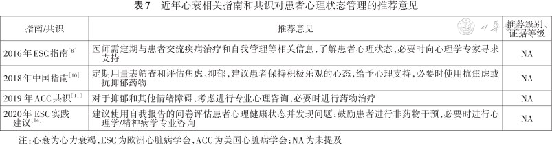 近年心衰相关指南和共识对患者心理状态管理的推荐意见