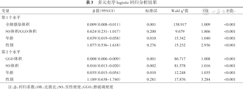 注:β:回归系数;OR:比值比;SO:实性密度;GGO:磨玻璃密度