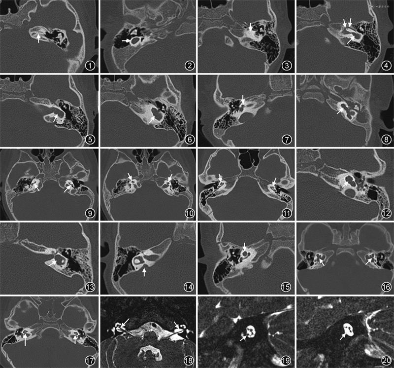 Jackler等[3]在1987年提出了根据胚胎发育过程的内耳畸形分类方法,但当时的影像检查手段为体层摄影。在此基础上,Sennaroglu等[5]在2002年提出了基于CT的内耳畸形分类法。在其最新的2017年版本中,进一步增加了MRI对于前庭蜗神经的评估[6]。