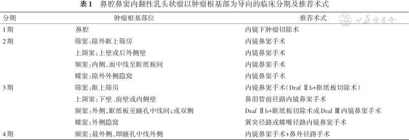 鼻腔鼻窦内翻性乳头状瘤以肿瘤根基部为导向的临床分期及推荐术式