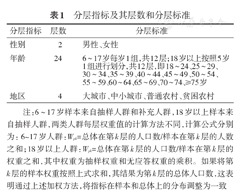 18岁以上个体最终权重为以上抽样权重和事后分层权重的乘积:Wfinali=Wsi×Wpk;6~17岁个体在分析计算分年龄组、性别结果时只考虑调整事后分层权重,Wfinali=Wpk。