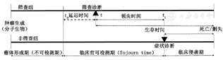 t0:发病时间,t:筛查诊断时间,t1:症状诊断时间