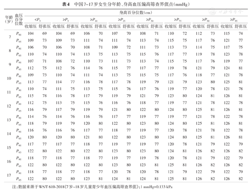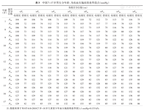 注:数据来源于WS/T 610-2018《7岁~18岁儿童青少年血压偏高筛查界值》