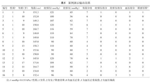 根据16名儿童青少年的相关数据,运行SPSS程序文件,具体输出结果见表5。根据血压判定结果,血压正常者11名,血压正常高值者3名,血压偏高者2名。