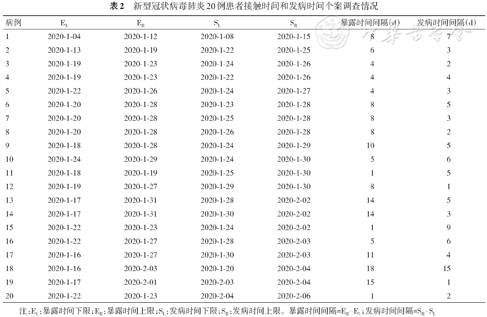 新型冠状病毒肺炎20例患者接触时间和发病时间个案调查情况
