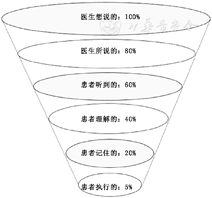 预防接种知情告知过程具有决定性的特点,即医疗卫生人员告知什么,决定了受种者或其监护人知情什么;医疗卫生人员告知多少,决定了受种者或其监护人知情多少;受种者或其监护人知情多少,又决定了受种者或其监护人将会做出何种决策。但是应该注意到,根据沟通漏斗原理[16],在知情和告知过程中会出现信息流失或衰减,如接种人员需要将自己理解的疫苗和预防接种知识告知受种者或其监护人,但其最终能理解和掌握的知识可能仅为少部分(图2)。因此,为了方便受种者或其监护人更好地做出决策,如何提高预防接种知情告知有效性显得尤为重要。