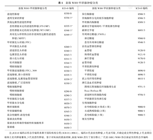 | 新版WHO甲状腺肿瘤分类 | ICD-O编码 | 新版WHO甲状腺肿瘤分类 | ICD-O编码 | |||
