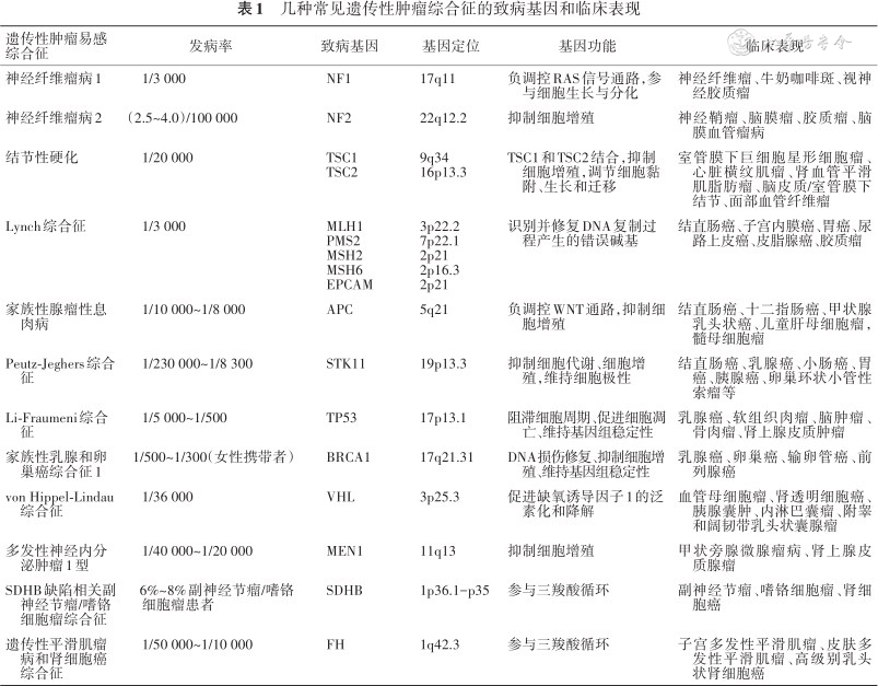 几种常见遗传性肿瘤综合征的致病基因和临床表现