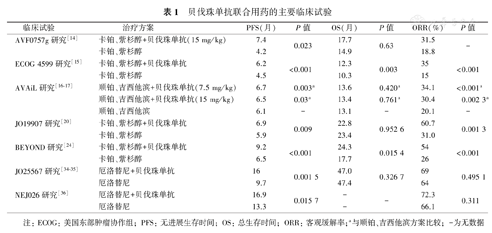 贝伐珠单抗联合用药的主要临床试验