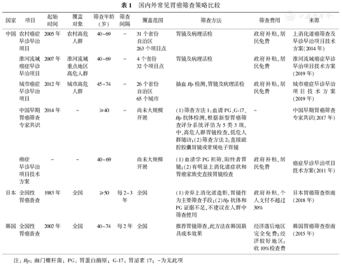 国内外常见胃癌筛查策略比较