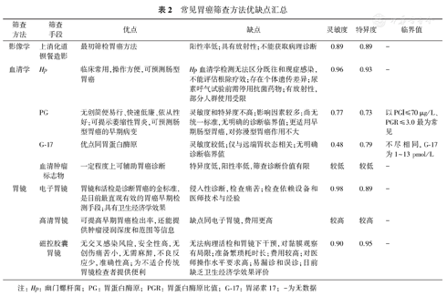 常见胃癌筛查方法的优缺点分析见表2[24,25,28,29,32,36]。