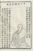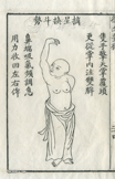 称之为"易筋经外经图"应该是为了区别于此前的其他易筋经导引图。考其图形,的确与前2种十二式图完全不同。然而再做进一步的考究,可以发现此十二图与《全图易经筋》中的"易筋经图"二十二式之前十二式完全相同,包括图形与说明文字,均无二致(图13,图14,图15,图16)。