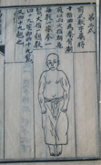 卫辉参府官廨炼功图左侧有3行字,写道:"无怀逸人曰:内丹功成,则登仙悟道;外丹功成,可壮健延年。并非采战炼汞者之左道旁门也。惟以服气益神,习劳健饭,聊为长力延年之一助云尔。道光丙戌中秋后三日录于卫辉参府官廨"。最后的这个署名极其重要,很好地回答了这套功法的真正来源,这是清代军营中强身习武所用的功法。