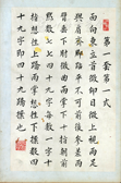 意外的收获来自于首都博物馆于2008年国庆举办的一个清宫文物展览,参观过程中,看到一幅与汉墓出土之导引图有同功异曲之妙的导引挂图––"卫辉参府官廨炼外丹图"。图上竖排3行,第1行8个人像,第2~3行各7个人像,共22个人像,代表了二十二式功法。将之与炼石居士的"二十二调气炼外功"对照,发现这完全是同一套功法,不仅是解释文字相同,连人物的服装也是一样的。有意思的是,二者画风完全不同。卫辉参府官廨的挂画,是典型的中国人物画,圆润富态,线条柔和;炼石山房调气炼外丹图,则明显受了西洋画风的影响,强调练功人的身体肌肉(封底图,图21)。前者绘成于道光丙戌(1826),后者绘成于道光辛丑(1841),有着明显的传承关系。