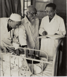 由于中医研究院聚集了一批声名显赫的全国名医,对当时的友好国家人士也产生了很大的吸引力(图9)。一些外国友人折服于中医中药的安全可靠与卓越疗效,纷纷前来治病、学习,或开展互访交流,使中医研究院在建院不久就具备代表中国形象的实力,成为国家外交窗口之一,富有成效地开展外宾门诊、出国医疗、对外培训和接待来访工作,由此使中医率先走出国门,逐渐向国际友邦传播。例如:1959年11月,朱仁康、李世忠一行受卫生部指派赴朝鲜为金日成首相治病。1962年,卫生部派遣岳美中为印尼总统苏加诺进行诊疗。1963年1月,锡兰总理来访,孙振寰参与为锡兰总理夫人班达拉奈克针灸治疗。1963年5月,广安门医院派遣孙振寰、韦文贵等参加卫生部组织的医疗组赴越南,为越南劳动党主席胡志明执行医疗保健任务等(图10)。