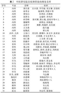 在此背景下,中医研究院带头组织实施师带徒计划,从院内确定31位名医、专家,让他们潜心传帮带教。其中内科10人,外科3人,妇科2人,儿科2人,针灸7人,骨科2人,推拿1人,眼科3人,医史1人(图7,图8);先后遴选104名徒弟,分别拜名老中医为师,举行了隆重的拜师仪式,并为他们制订了"继承老中医学术经验的实施计划" (表2)。