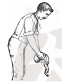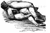④保护会阴及会阴侧切。为保护会阴,《胎产举要》详细介绍了产妇的体位以及医者的手法:"产妇之方位,须当侧卧,两膝向腹处缩起,再以折叠之软枕搁在两膝间,如志主之下努力,不能自制,可施蒙药,若会阴尚且舒放不足,未能容头出而无破裂之虞,则当径行压头以迟其出,故用左手过产妇右腿,置大拇指于枕,余指在胎头前边,当子宫每一收缩,按之使后,同时以右手护持会阴,手之放法,务使大拇指食指两指间之折,恰当会阴前边,大拇指在右,余指在左,当阵痛时,柔柔压之,所压之向乃朝交骨节。"并附有插图,形象直观(图5)。同时指出在撕裂在所难免时,应行会阴侧切术:"割开会阴之法,当势难免于破裂,礼属可行其割法,乃在会阴脊两旁各割一口,割时应在痛阵,同时又当提防胎头忽然产出。"[7]194