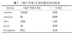 | 英文名 | 《胎产举要》译名 | 今译名 |