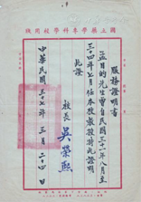 1936年在他和中国药学会同仁的倡议和努力下,创建了中国第一个独立的国立药学专科学校,孟目的为首任校长并兼药剂学教授,1939年底由于他资助进步学生去延安,被免去校长职务,同年年底他接受宋子文的邀请到香港创办协和制药厂并任厂长。1941年底香港被日军占领,内地被严厉封锁,药品奇缺,孟目的又被孔祥熙紧急召回,创建重庆协和制药厂并担任厂长,期间还兼任国立药专教授。1941—1945年间,他担任国民政府卫生署简任技正,曾多次被派往兰州,筹建了西北制药厂。1946年借为其父奔丧期间,到解放区张家口生活过几个月,协助共产党八路军建立药厂。抗战胜利后,又被卫生署派往上海从政府接收人员手里,接任上海善后事业保管委员会委员兼上海第一制药厂厂长,评定为卫生部简任技正三级(图11),1948年当选为中国药学会第十二届理事会理事长。1949年后他任上海华东人民制药公司经理,1950年被卫生部任命为中华人民共和国药典编纂委员会总干事并出任中国卫生部药品检验所所长。他是新中国承认的抗日时期就被评为的国家一级教授(具体时间不详)。1962年卫生部药品和生物制品检定所合并为中国药品生物制品检定所,他为第一任所长,同时兼任中国卫生部药典委员会副主任委员。1980任卫生部药品生物制品检定所名誉所长直至去世[7] 。