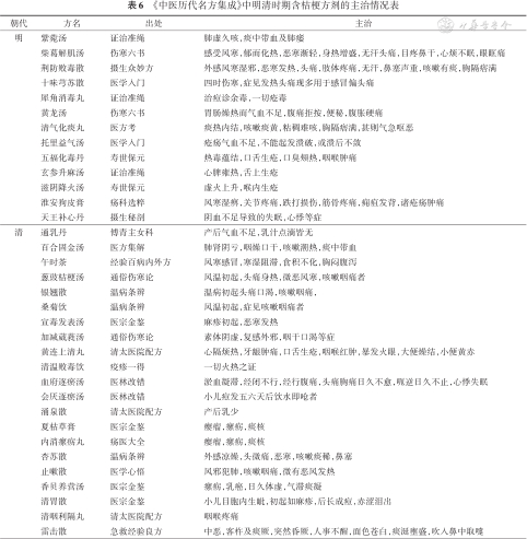 《中医历代名方集成》中明清时期含桔梗方剂的主治情况表
