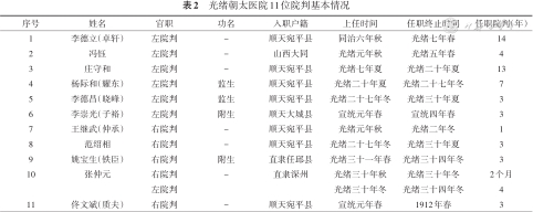 光绪朝太医院11位院判基本情况