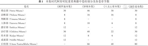 本集时代阿育吠陀重要典籍中卷的划分及各卷章节数