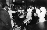 1956年,美国骨科医师学会为了宣传正确的站姿对骨骼发育的重要性,举行了多期美国"脊椎小姐"选美比赛,选美比赛用X射线摄影评估女性的脊柱曲线。图14是芝加哥美国"脊椎小姐"选美的现场照片,其X射线应用的正当性被扩大化,最后一届美国"脊椎小姐"选美于1969年在田纳西举办,随后"脊椎小姐"选美与众多往事一样消失在了历史的尘埃中。