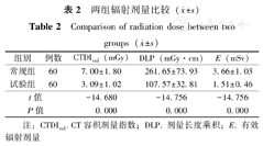 | 组别 | 例数 | CTDIvol(mGy) | DLP(mGy·cm) | E(mSv) |