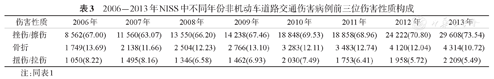 2006-2013年NISS中不同年份非机动车道路交通伤害病例前三位伤害性质构成