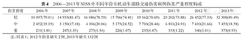 | 伤害程度 | 2006年 | 2007年 | 2008年 | 2009年 | 2010年 | 2011年 | 2012年 | 2013年 |