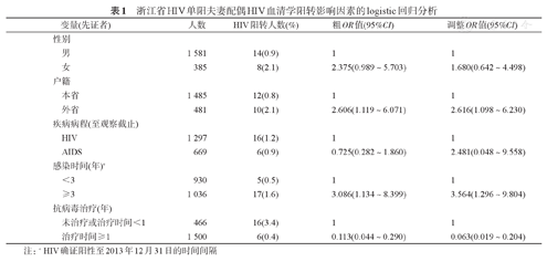 浙江省HIV单阳夫妻配偶HIV血清学阳转影响因素的logistic回归分析