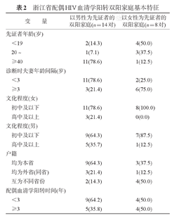 浙江省配偶HIV血清学阳转双阳家庭基本特征