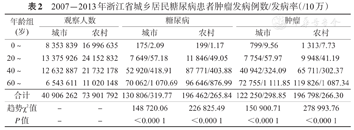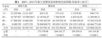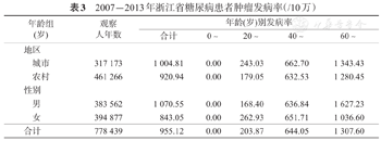 糖尿病、肿瘤患者发病资料源自浙江省卫生监测区2007-2013年慢性病监测和生存随访数据库,人口资料来源于各监测区公安部门人口报表。