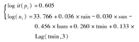 | Lag(tmin, 3) | 0.133 | 0.032 | 4.170 | 0.000 | 0.071 ~0.196 | ||