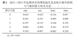 2011-2013年盐城市沿海滩涂地区恙虫病月报告病例与气象因素互相关关系