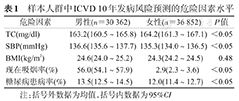样本人群中ICVD 10年发病风险预测的危险因素水平