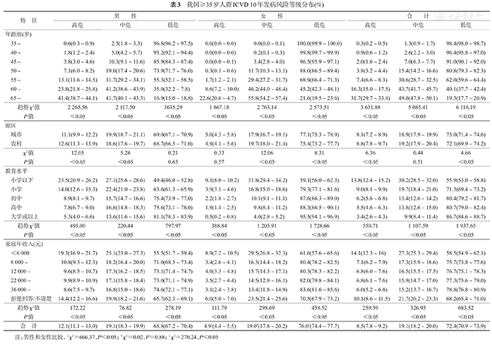 我国≥35岁人群中有8.5%在未来10年发生缺血性心血管病的可能性超过10%,其中尤为应关注男性、农村、教育水平较低、收入较低人群。