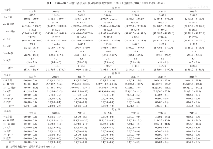 2009-2015年湖北省手足口病重点干预人群是0.5~5岁婴幼儿,尤其是发生重症死亡风险高的6~11月龄婴儿。加强对重点人群的监测,有效防控手足口病,减少重症和死亡。