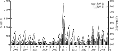 分析北京市2006-2015年猩红热发病趋势,并对高发年份发病特征进行分析。