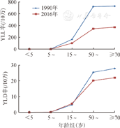 本研究存在局限性。首先,GBD2016研究结果在方法学上存在一定的局限[9,11]。另外,GBD研究计算伤残权重等有关指标采用全球的标准人口,与中国人群存在一定的差异。简单线性回归模型在反映时间变化趋势中的作用较弱,有待于更有效的分析方法。