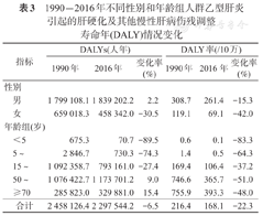 1990-2016年不同性别和年龄组人群乙型肝炎引起的肝硬化及其他慢性肝病伤残调整寿命年(DALY)情况变化