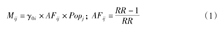 式中:i表示不同健康效应终点,j表示网格;Mij指归因于PM2.5的超额死亡数;γ0i指疾病别的基线死亡率;Popj为每个网格的暴露人口数;AFij表示归因分值;RR为相对风险度,本研究通过GEMM进行估计。
