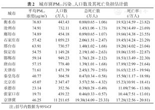 城市别PM2.5污染、人口数及其死亡负担估计值