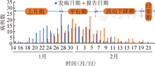 2020年1月23日至2月22日陕西省COVID-19监测数据来源于《中国疾病预防控制信息系统》中的《传染病报告信息管理系统》以及各级CDC的流行病学调查报告,以病例现住址为统计标准,分析陕西省COVID-19发病趋势及流行特征。