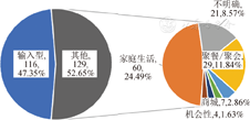 陕西省暴露史明确的本地接触病例以共同家庭生活和亲朋聚餐/聚会为主要接触方式,分别占所有本地病例的24.49%和11.84%。而本地病例中仍然有21例暴露史不明确。见图4。