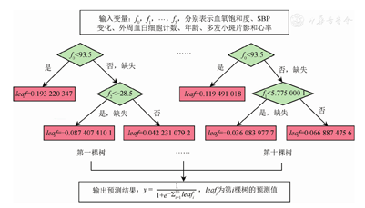 综上所述,使用XGBoost预测模型对COVID-19病情转归进行预测,能够帮助医务人员方便、快捷、准确地评估患者的病情变化,从而为早期、动态地发现COVID-19重症转归提供参考。但本研究的样本量有限,对于结局的预测未能达到绝对的理想范围,而且由于XGBoost有许多超参数,因此它的优化可能是一项非常艰巨的任务[14]。不过模型本身也是不断迭代、不断进步的,随着新的数据加入,分析结果将会越来越精确。